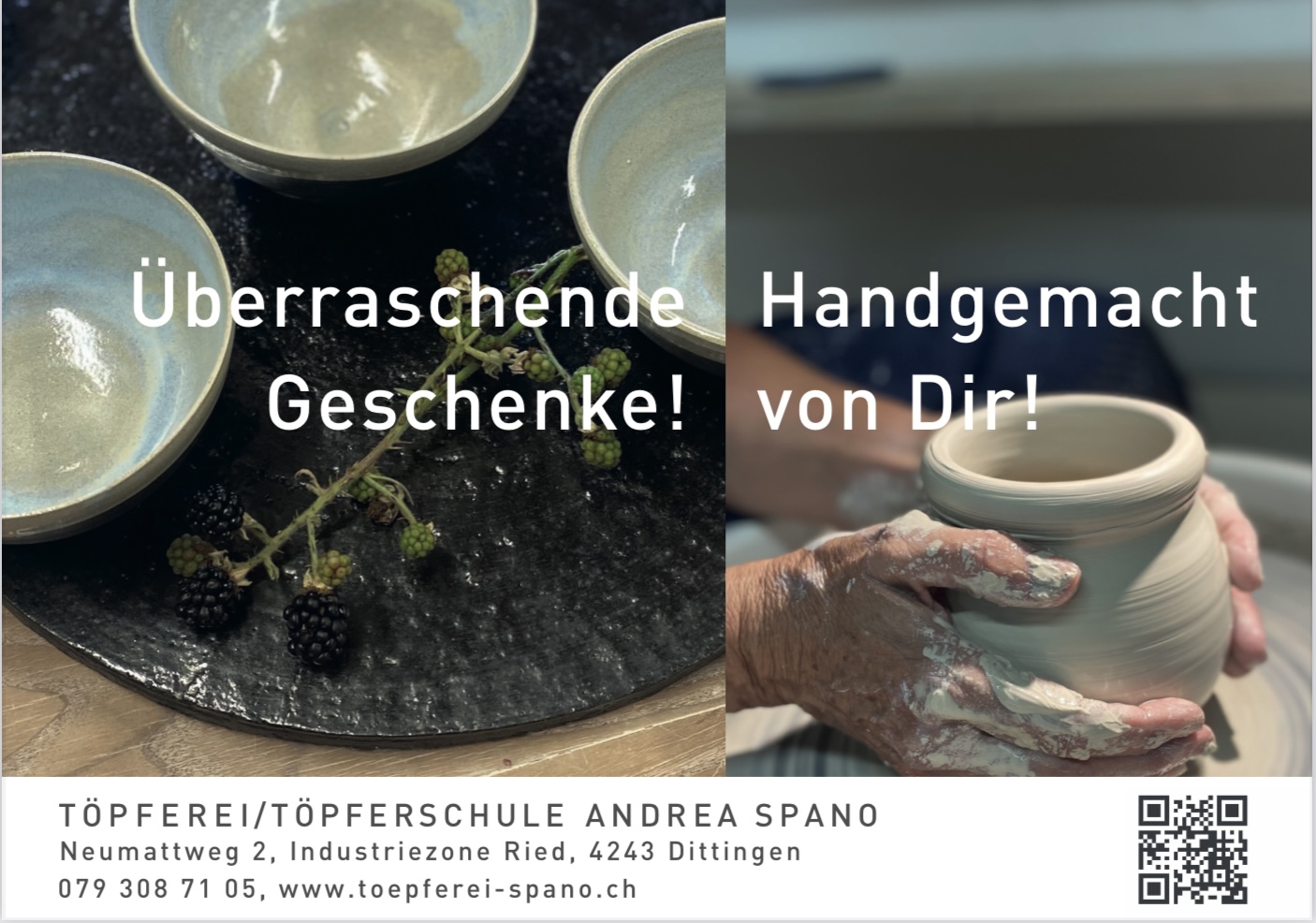 Atelier und Verkaufsausstellung in Dittingen. Gebrauchs- und Kunstobjekte sowie Urnen aus Porzellan und Steinzeug.